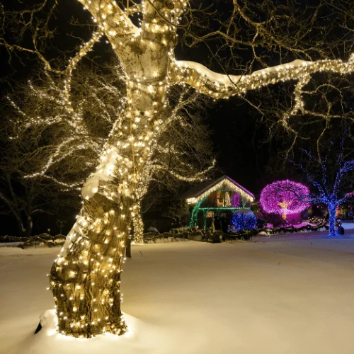 Bring your outdoor landscaping to life with beautifully wrapped trees, shrubs, and hedges that sparkle day and night.